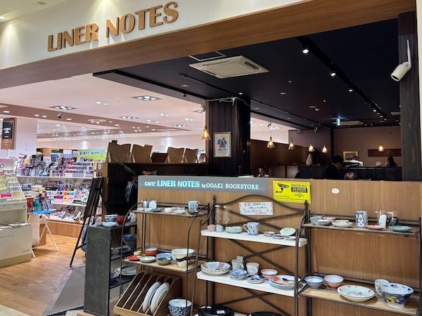 マルヤマクラス2階にある「大垣書店」お隣に位置する「カフェライナーノーツ」。ブラウンカラーを基調とした装いはまるで秘密基地のよう!