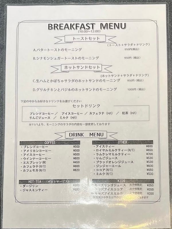 モーニングメニュー