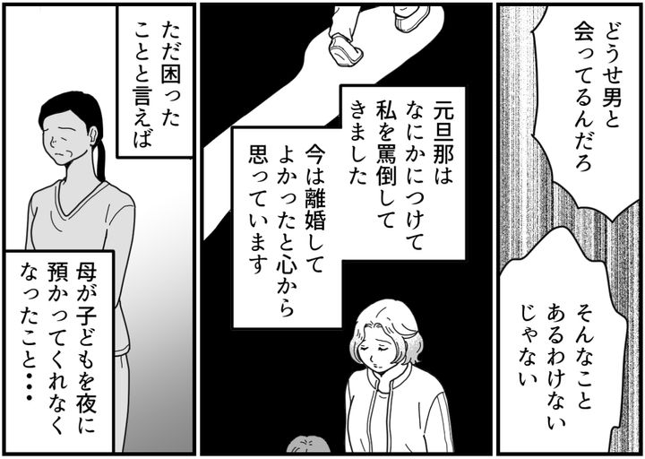 離婚のとき、元旦那はあることないこと言って責任逃れをしようとしました。母にはそのなかの「子どもをほったらかして遊んでいた」という発言が引っかかっているのかもしれません。もちろん私にとって一番大切なのは子どもですが……。