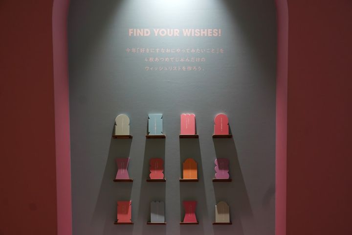 ピンクと水色を基調とした空間には長さ約30mもの巨大なウィッシュリストが設置され、今年やってみたいことや気になるテーマを探すことができます。