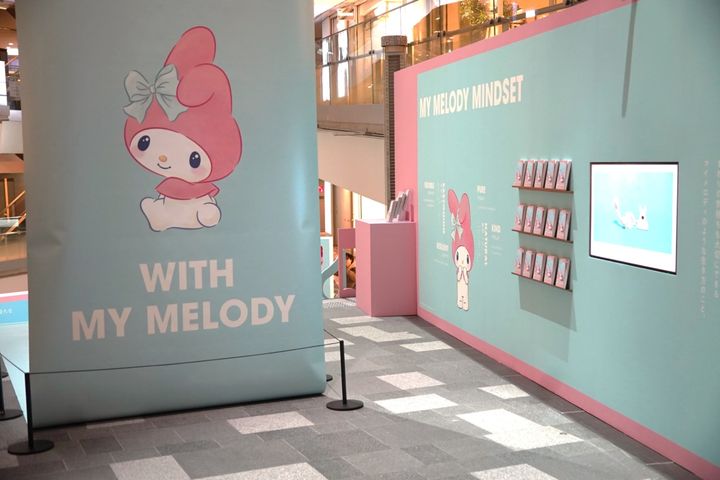 吹き抜け階段上のエリアでは「マイメロな生き方」とは何かを紐解くイントロダクションが展示されており、「無理しない」「やさしさ」など、マイメロディのマインドセットを学ぶことができます。