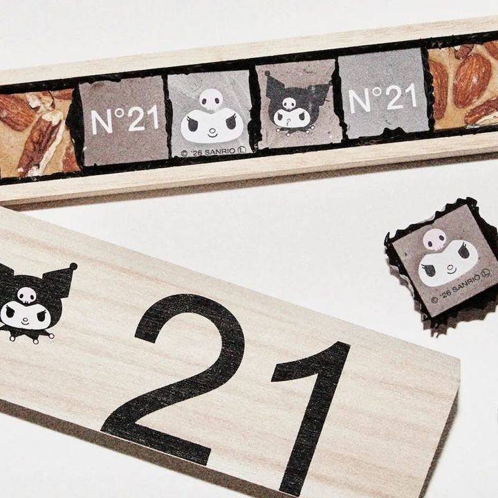 なかでも注目したいのが、桐の箱に収められたチョコレートアソート。「クロミ」の乱暴者に見えるけど実は乙女チック(!?)なギャップが魅力なキャラクター性を表現し、オレンジ×シナモンやラズベリー×ペッパーのスパイシーで甘酸っぱいフレーバーがそろう。さらに、ヘーゼルナッツチョコレートに砂糖がけアーモンドやペカンナッツをトッピングした一粒など、食感のアクセントも楽しい構成に。「N21」と「クロミ」をあしらったチョコレートは、かわいさの中にシックさが漂う。