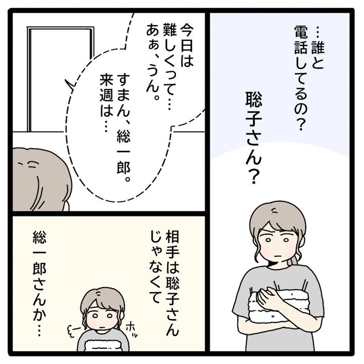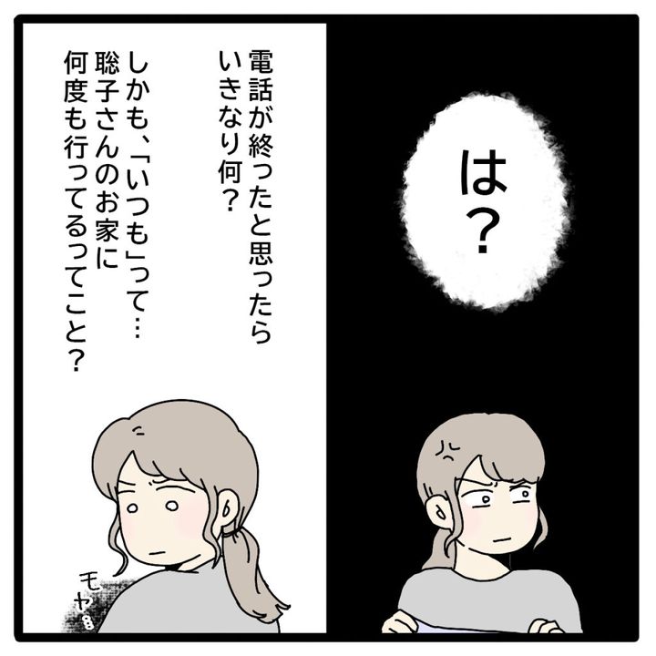 「は?」突然の嫌味に怒りを抑えられない私。「電話が終わったと思ったらいきなり何?しかも、『いつも』って・・聡子さんのお家に何度も行ってるってこと?」不安と不満が沸き上がり、モヤモヤが止まりませんでした。