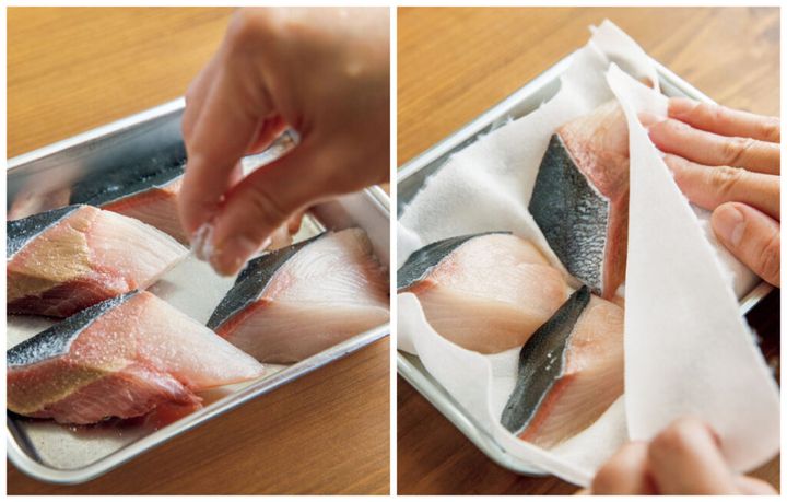 ぶりは一口大に切って塩をふり、10分ほどおく。ペーパータオルで包み、水けをしっかり拭き取る。片栗粉をまぶし、余分な粉は落とす。れんこんは皮をむき、幅1cmの輪切りにし(大きければ半月切り)、水にさっとさらして水けをきる。