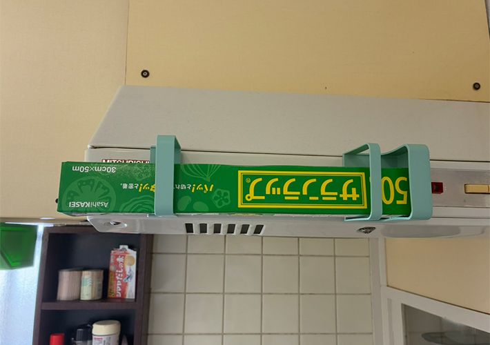 まず、換気扇や冷蔵庫など、マグネットがくっつく場所に、傘立てを設置します。