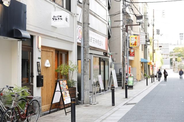 「おにぎりポニーテール」は、JR大阪天満宮駅から歩いて約30秒の場所にあります。同じ通りに上方落語の寄席「天満天神繫盛亭」、そして南側つきあたりに「大阪天満宮」の北門があります。