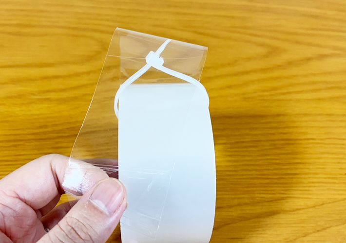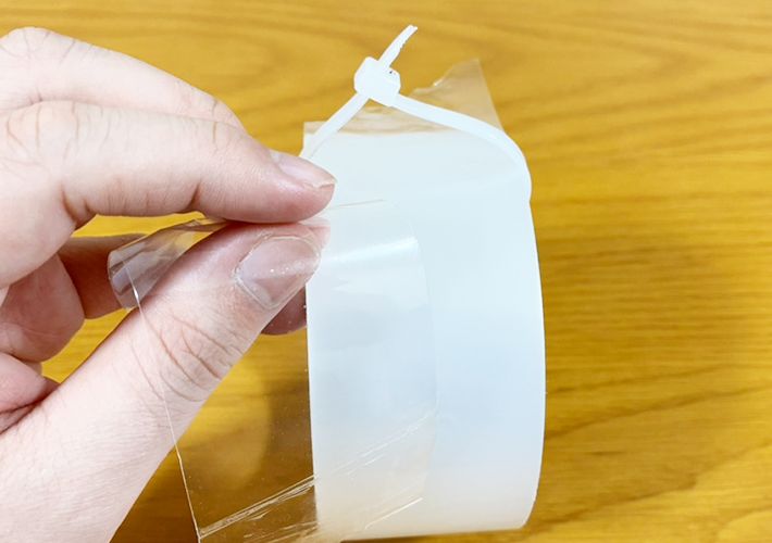 まずは、OPPテープの本体に結束バンドを巻き、固定してください。