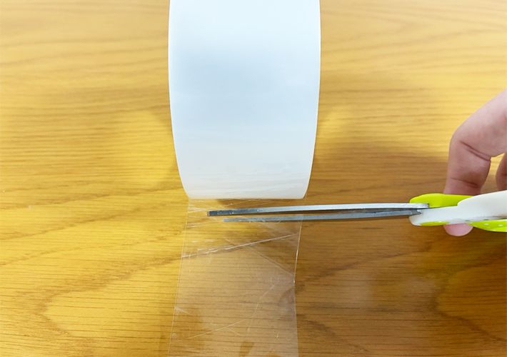 後は、片方の手でOPPテープを固定し、もう片方の手でテープをつかんで引っ張れば、自然に切ることができます。