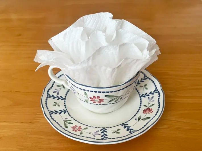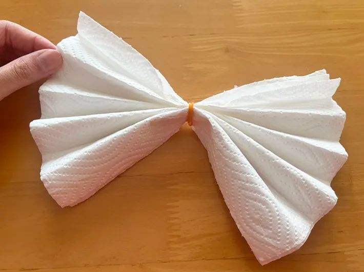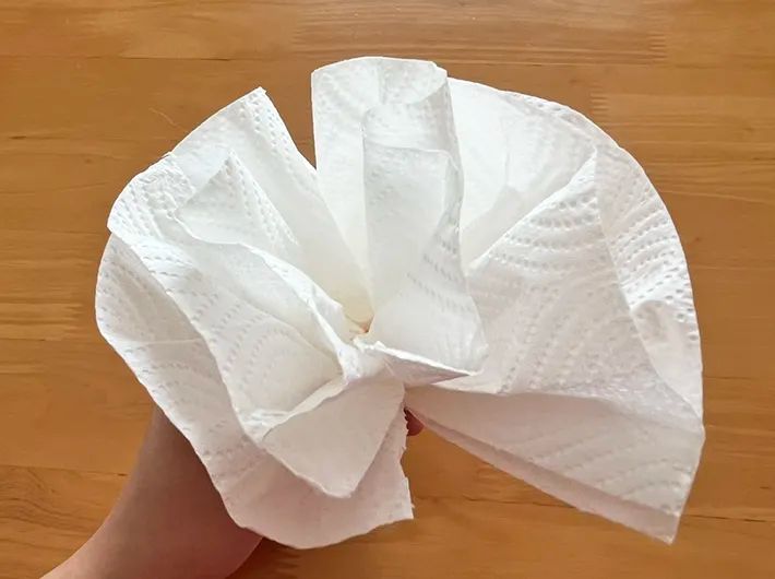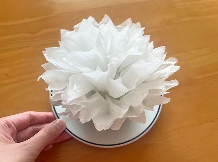 キッチンペーパーの枚数を増やしたり、端を切ったりすると、ちょっぴり華やかにアレンジすることもできます。