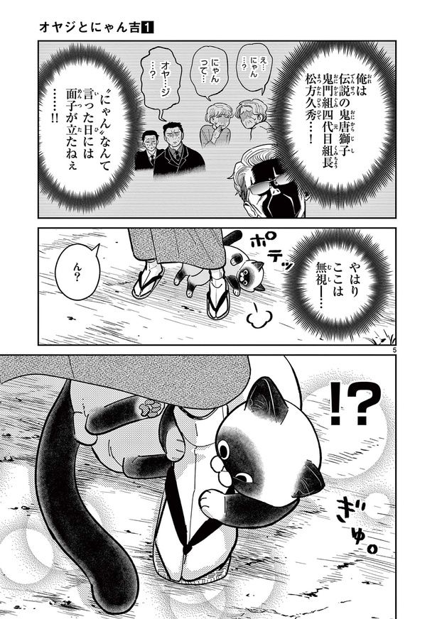 かつてやくざ同士の抗争に終止符を打った伝説の極道・松方久秀。平穏を取り戻したのち年を重ねて組長を引退するが、平穏な日々は彼には張り合いがなく、とても暇なものだった。そんな松方の心に火を付けたのは、たった1匹の虚無顔の野良猫。「にゃん吉」と命名された野良猫は自由奔放で、堅物な松方の常識を覆すばかり。果たして松方は、にゃん吉との抗争に打ち勝つことができるのか……!? 元極道のオヤジ×猫の日常を描いたドタバタふわふわコメディー『オヤジとにゃん吉』をお楽しみください。