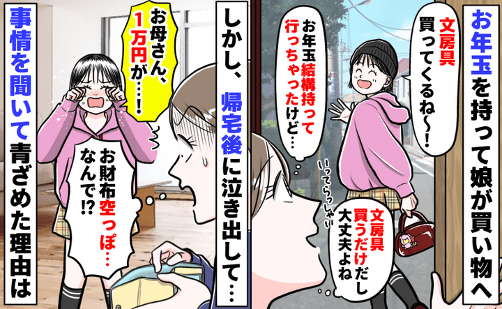 3. 娘がお年玉で文房具を買いに「お母さん、1万円が…!」え?財布が空っぽ!?事情を聞いて青ざめたワケ