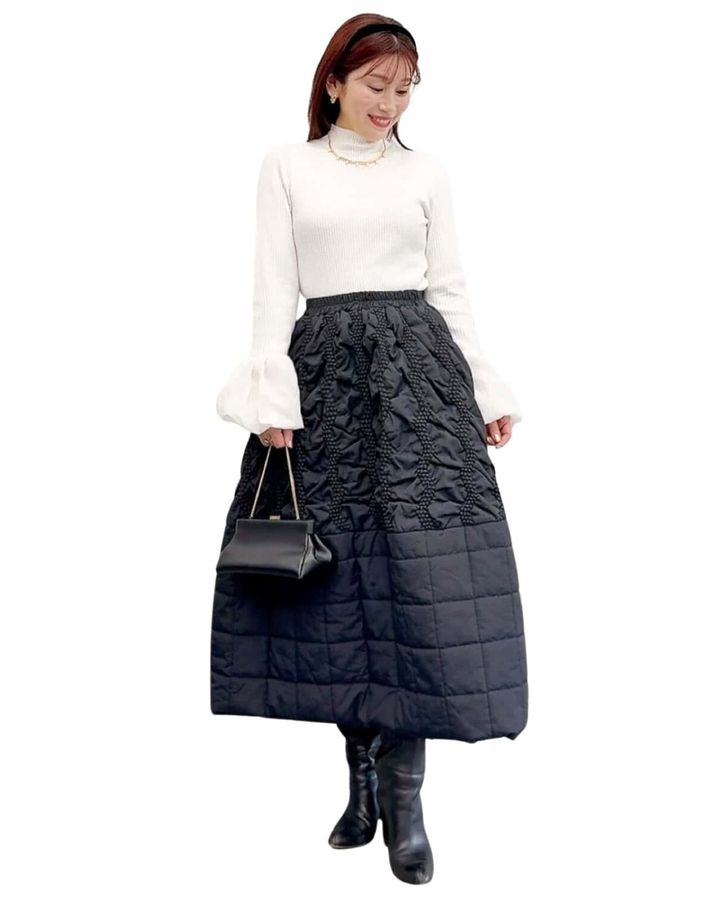 ふんわりした立体感が可愛いキルティングスカート。着膨れせず、暖かさもきちんとキープ。寒い季節も“可愛い”を妥協しない方におすすめです。
