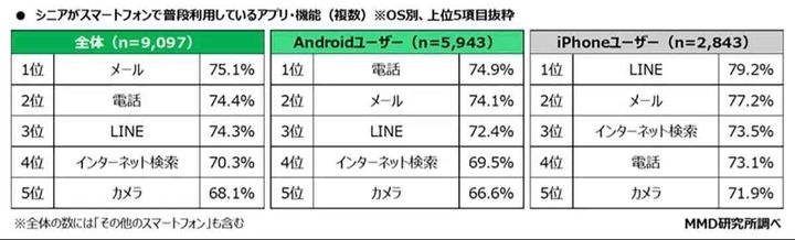 1:シニアのスマホ利用はOSによって「LINE派」と「電話派」に