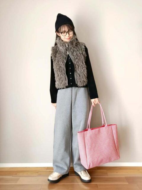 おしゃれさんの間でファーやダウン素材のベストが人気。厚手・オーバーサイズのトップスのほか、真冬に着るには心許ないアウターの上に重ねれば、簡単でセンスよく決まります。動きやすく脱ぎ着がしやすいので、車移動が多い人や、室内や電車内で暑くなるのが嫌な人にもぴったり。