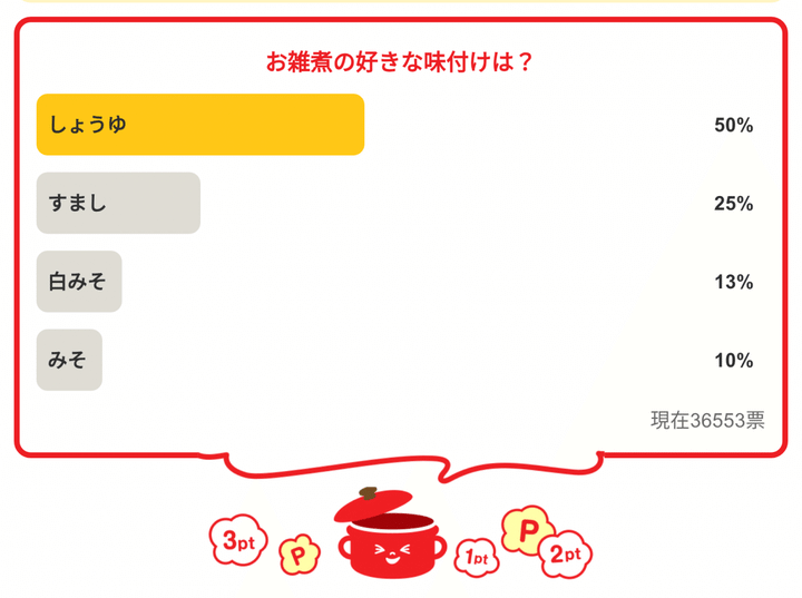 ・「お雑煮の好きな味付けは?」の結果は…
