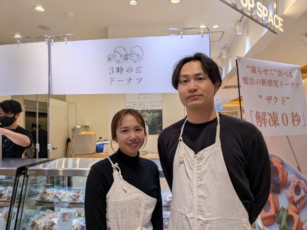 「3時のドーナツのはじまりは、我が家の子どもと一緒に作った野菜ドーナツでした。おなかもこころもいっぱいにしてくれる、やさしい口どけが原点です。」とオーナーの横手さん(左)。地元では、子どもたちのために「ドーナツづくり」のワークショップを行ったり、今月末には学校給食に提供したりと、地元の食育にも貢献しているそうです。