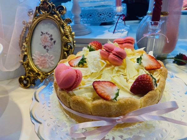 今年のテーマは、近年Z世代を中心に流行している、天使をモチーフにした幻想的で可憐な世界観「エンジェルコア」。 いちごに恋をした天使たちが、その美味しさと美しさに陶酔していく――そんな物語が表現されています。なんてロマンティックなのでしょう。会場のどこかに、今にもエンジェルが隠れていそうな気さえしました。 しかも、いちごがふんだんに使われていて、世界観とともに味わいの魅力にもすっかり心を奪われてしまいました。