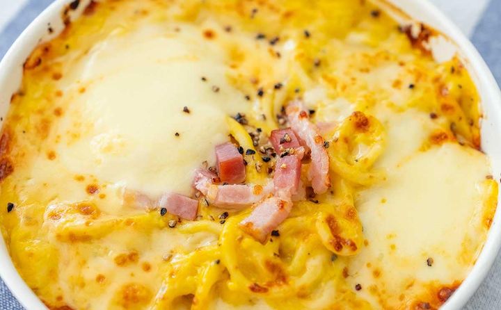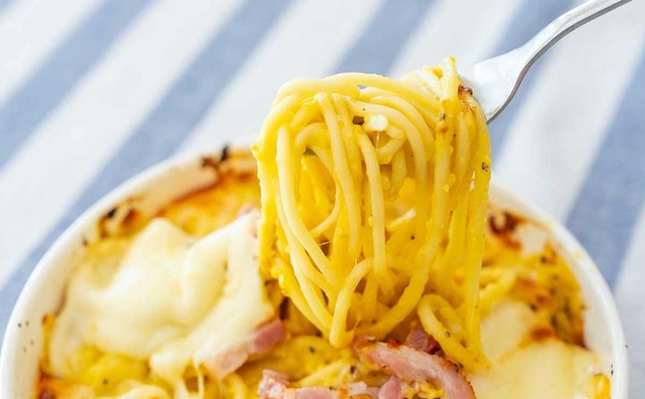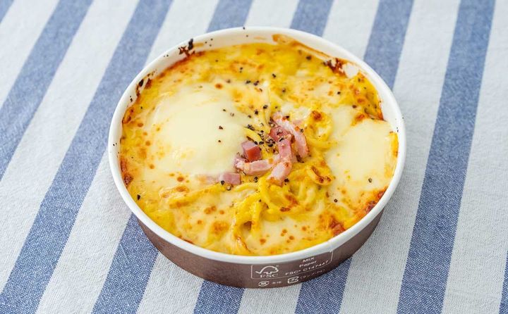「チーズの虜 焼きカルボナーラ」は、たまごとクリームのコクが特徴のカルボナーラソースと、とろりとのびるチーズソースを絡めて食べるパスタです。