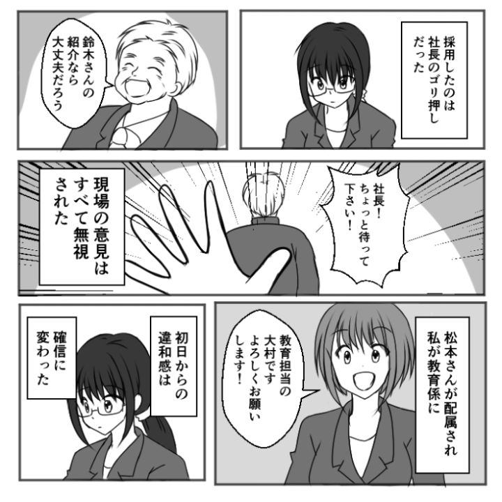 衝撃のエピソードを漫画化!今回は社長のゴリ押しで入社してきた問題行動ばかりの中途社員のお話をご紹介します。
