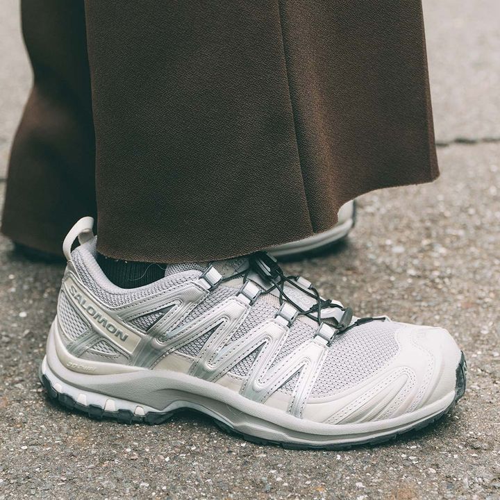 足元は『サロモン』のスニーカーでスポーティに仕上げ。潔いホワイトをセレクトして、冬コーデを軽やかに昇華!