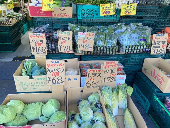 どれも美味しそうなお野菜や果物ばかりで何を購入しようか迷ってしまいました。私は、キャベツ・ほうれん草・小松菜・かぼちゃなどを購入しました。私が訪問した日は、キャベツやレタスが68円で売っていてびっくりました。買い物していたお客さんたちもカゴいっぱい野菜や果物を購入していましたよ。