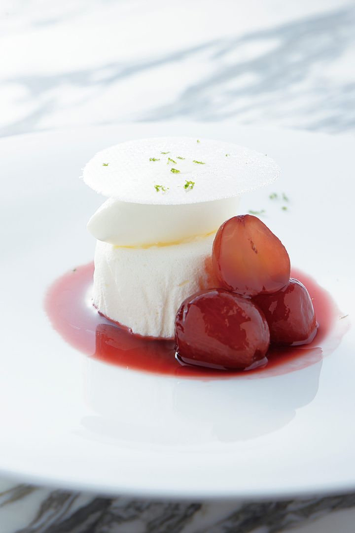 季節の果物を添えた「フロマージュブランのムース」もスペシャリテ。
