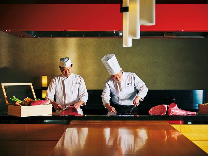 ヒルトンの最上級ブランド、ウォルドーフ・アストリアが4月に日本初進出! それぞれに魅力的な4つのダイニング&バーのなか、ハレの日には鉄板焼と寿司のカウンターを備えた日本料理「月見」がおすすめです。東京・麻布十番の名店「石垣吉田」の吉田純一シェフが監修する鉄板焼の主役は、生産者、35カ月以上の長期肥育、そして雌牛にこだわったオリジナルブランド牛「月見特選神戸ビーフ」。低温調理と炭火焼きを組み合わせた独創的な焼き方で、香ばしさとクリスピーな食感の後に上質な脂がとろける魅惑の味わいを実現します。アミューズや前菜などのメニューも、日本料理をベースにしながらも、旬の食材にひねりを加えたイノベーティブな美味揃い。鉄板焼きの枠に収まらない新しい口福体験を、ぜひ。