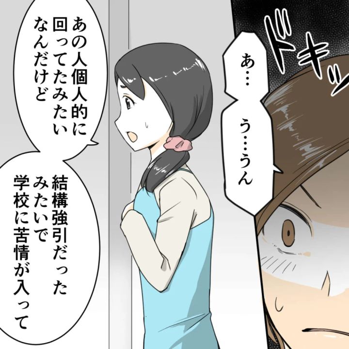 ハルちゃんママの名前にドキッとしながら「あ・・う、うん」と答えると、ユウちゃんママは「あの人、個人的に回ってたみたいなんだけど、結構強引だったみたいで学校に苦情が入って・・」と教えてくれました。ハルちゃんママ、他の家もたくさん回るって言ってたもんなぁ。きっと私みたいに断り切れずに不本意ながらお金を出した人がいっぱいいたんだろうな。