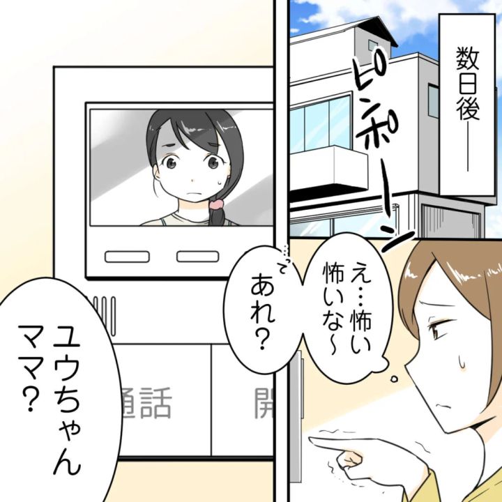 それから数日後、家のインターホンが鳴りました。まさか・・またハルちゃんママ?恐る恐るモニターを確認すると、そこに映っていたのはユウちゃんママでした。