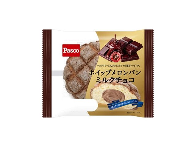 チョコクリーム入りのビスケット生地をトッピングしたメロンパンに、チョコホイップクリームを入れました。 カロリー:376kcal