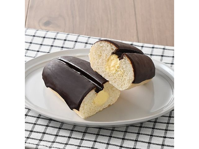 ふんわりと口どけのよいパンに、カスタードホイップクリームをサンドし、チョコをコーティングしました。
