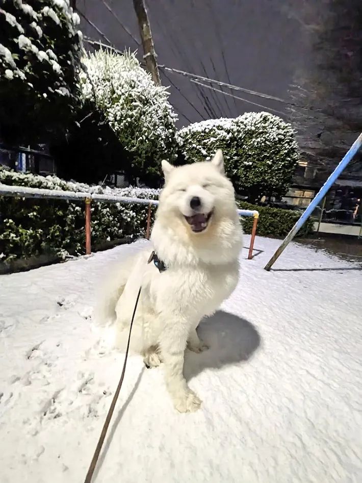 初めて雪遊びをしたサモエドの表情にキュン 「ご機嫌さん」「何このかわいい生命体は」