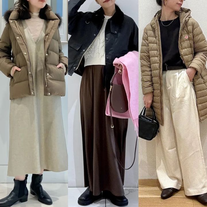 暗い色使いが増える冬の着こなし。特にアウターやパンツ、スカートはダークカラーを着ることが多いですよね。そんなときは、ベージュのアウターがあると重宝します。白のダウンだと汚れが気になる……という人でも、ベージュなら取り入れやすいですよね。