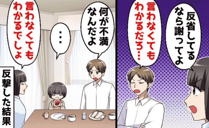 あるとき、私は意を決して「黙って帰ってくるのはやめてほしい」と夫を問い詰めました。すると夫は「俺にも外でいろいろあるんだ!」と逆ギレ。仕事が大変なのは理解できますが、それは家庭で子どもをおびえさせていい理由にはなりません。
