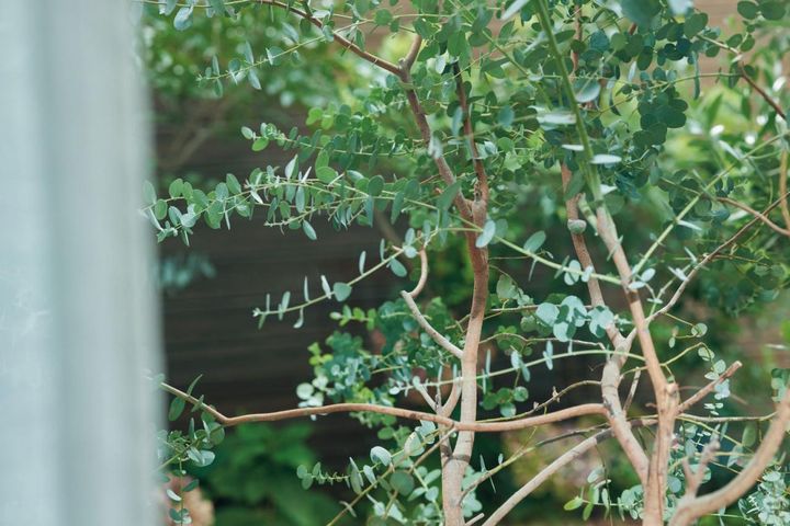 庭はいろいろ試すうちに丈夫でお世話いらずのグリーンだけが残りました。ダイニングからカーテン越しに見える葉のシルエットにも癒されます。あまり手をかけすぎず、剪定はときどき自己流で。「ボサボサ庭」と名づけて無理なく楽しんでいます。