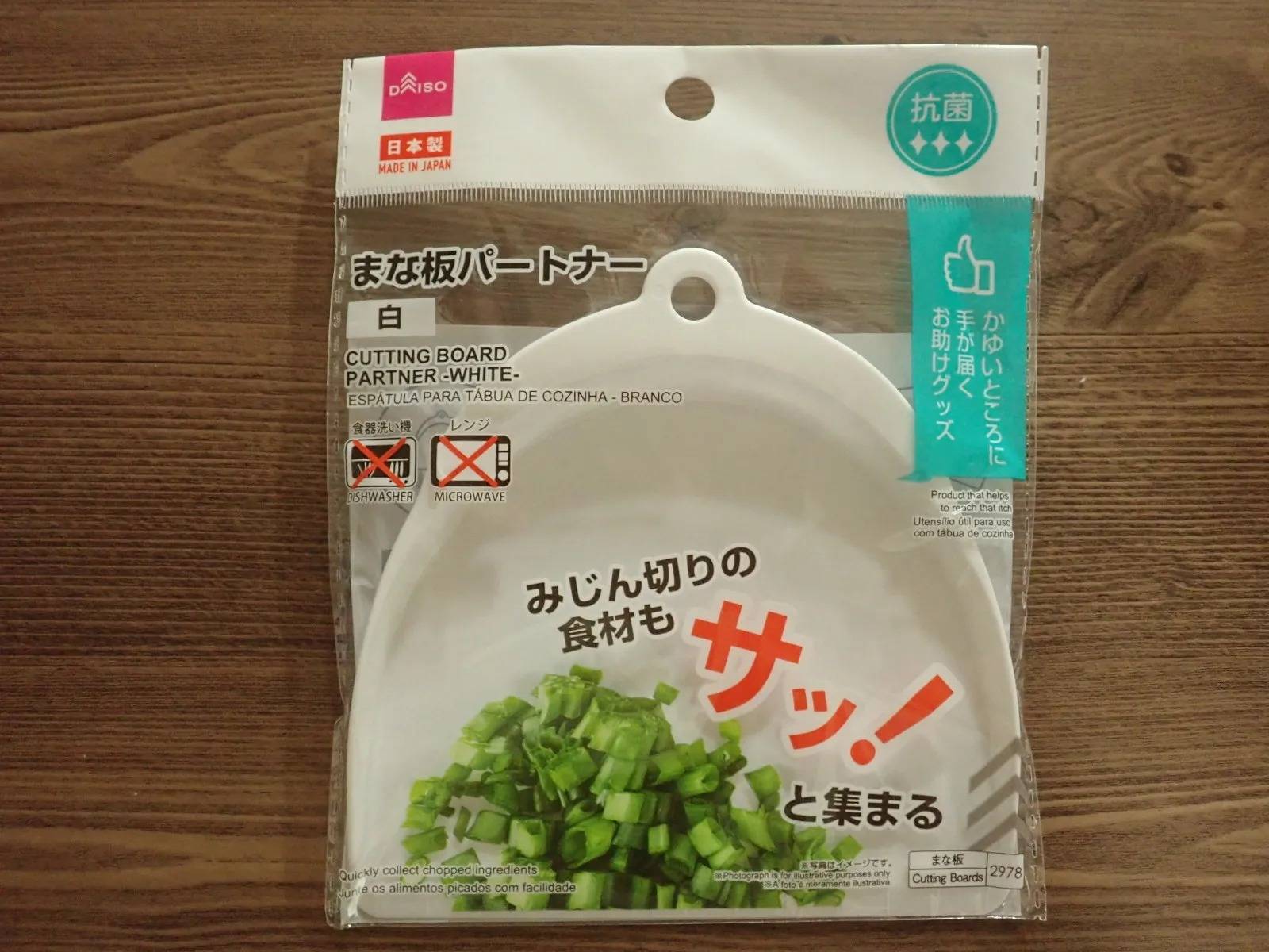 DAISO(ダイソー)の「抗菌まな板パートナー(白)」は、みじん切りした食材などを集めるためのアイテムです。