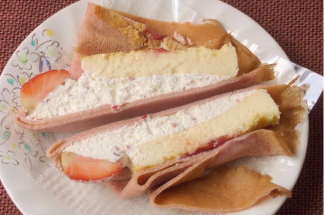 クリームたっぷりクレープに、いちごのおいしさちりばめたような一品でした。
