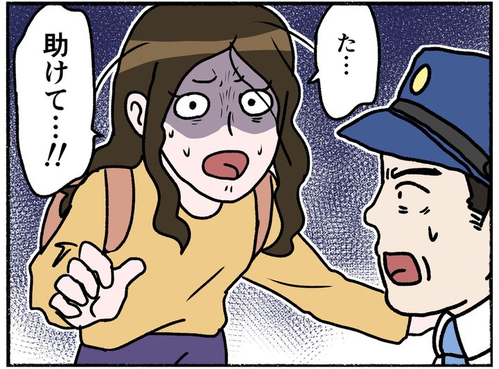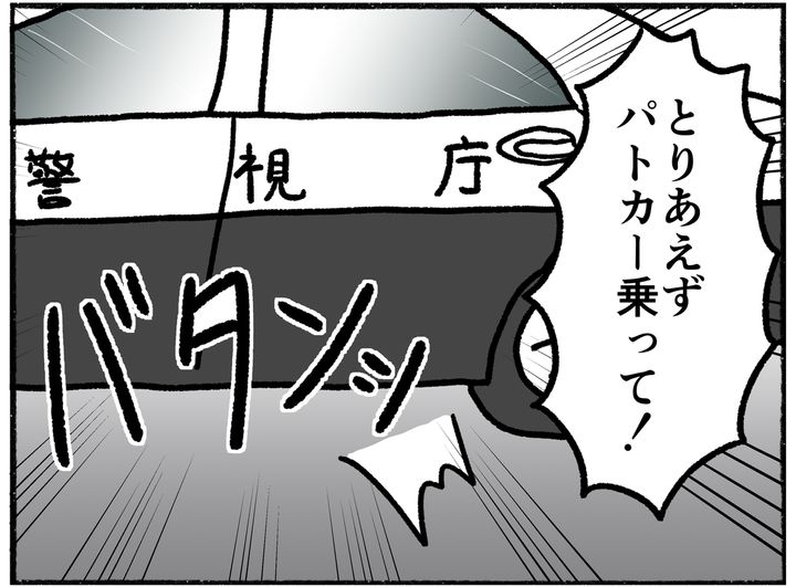 そしてパトカーを見つけると駆け寄り、窓を叩くのだった。