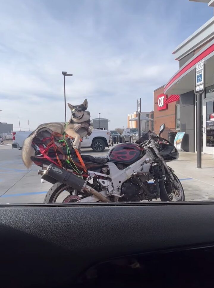 3. 駐車場で隣り合わせたバイクを見たらビックリ!クールなハスキー犬が!!【アメリカ・動画】