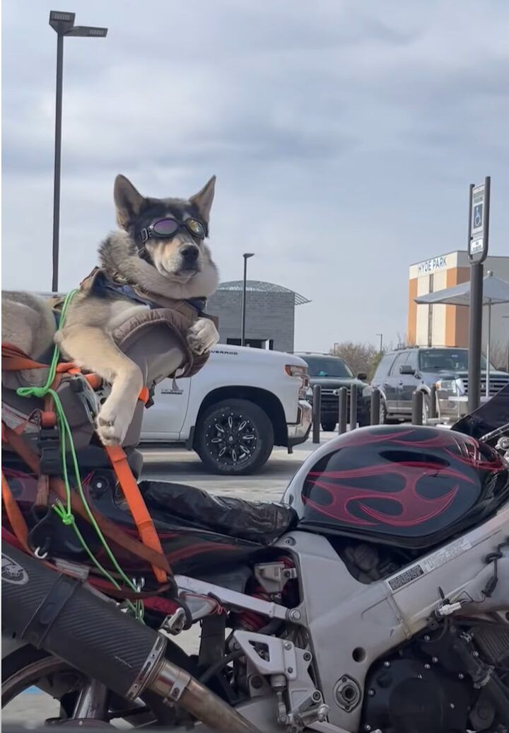 駐車場で隣り合わせたバイクを見たらビックリ!クールなハスキー犬が!!【アメリカ・動画】