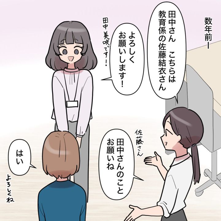 新入社員だった田中美咲さんは、私がいる営業部に配属されました。先輩の藤澤さんに言われ、私は田中さんの教育担当になりました。挨拶した時の田中さんはかわいらしくて明るく、しっかり挨拶のできる子だな、と良い印象でした。
