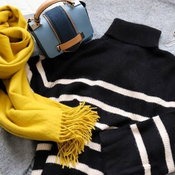 タートルネックや首元がゆったりしたオフタートルネックは、骨格ナチュラルタイプの人の骨感や筋感をカバーしつつ、冬もしっかり温かいコーディネートにできるのでおすすめです。
