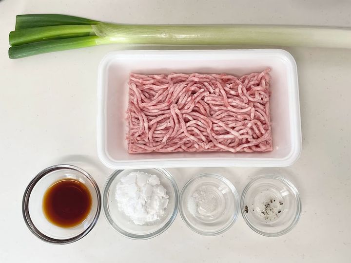 豚ひき肉、しょうゆ、塩、こしょう、片栗粉をポリ袋に入れて、上からもむようにして混ぜる。