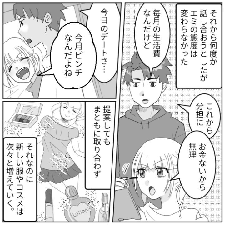 3. 「少し生活費を出して」→「絶対無理」付き合ってからデート代、同棲してからの生活費を1円も出さない彼女!感謝の言葉もなく逆ギレするので、我慢できなくなり・・・