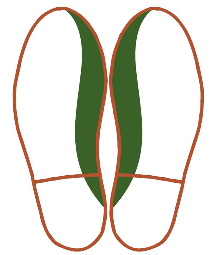 X脚傾向にあり、着地をした時、足が内側へ倒れ込む傾向が強いようです。ミッドソールの内側に補強材が配置されているようなシューズを選ぶと倒れ込みが緩和されます。