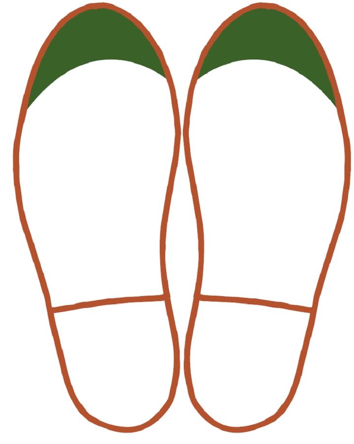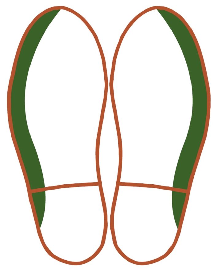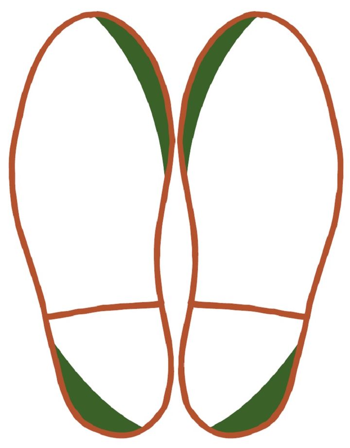 外側が大きく減っている人は、重心が外側にかかってしまう傾向が強いようです。O脚傾向にあり、脚運びが不安定になっていることが考えられます。