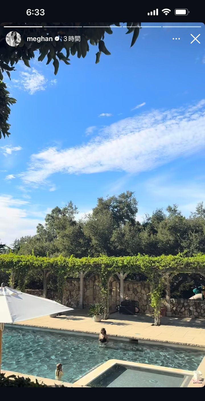 ちなみに動物園での動画に加え、メーガン妃は自宅の庭の様子も披露。豊かな緑に囲まれたL字型のプールがあるのをチラ見せしている。プールには人影が見えるが、妃の母ドーリア・ラグランドと娘のリリベット王女だと見られている。