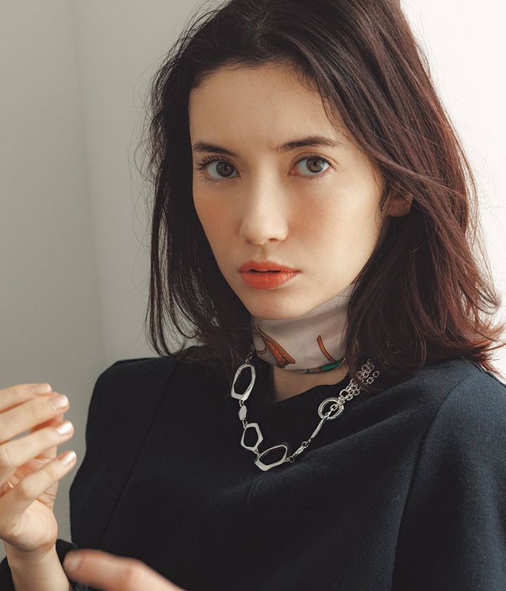 ネックレス〈SV〉¥143,000(ブランイリス/ブランイリス トーキョー)スカーフ¥11,000(マニプリ)プルオーバー¥36,300(チノ/モールド)