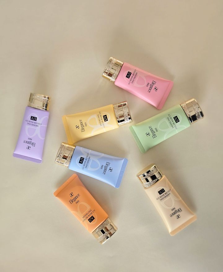 コントロールカラーのパイオニア「エレガンス」のモデリング カラーベースは、心地よく伸び広がります。色ムラやくすみをカバー! トーンアップもしてくれるの。ナチュラルで透明感のある肌、さらに、毛穴や凹凸もカバー。つるんとした肌に整えてくれます。