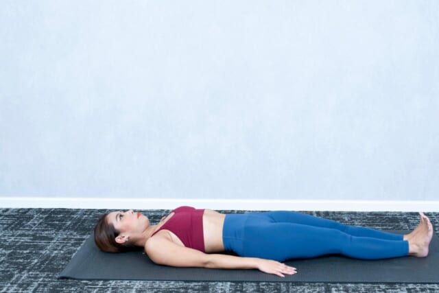 (1)両脚を閉じて仰向けに寝る